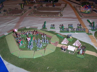 An overview of the table. The Union entered on the left side of the table. Rebel forces started at the far right corner along the railroad line and the other Rebels were stations at the bottom of the table, defending a redoubt.